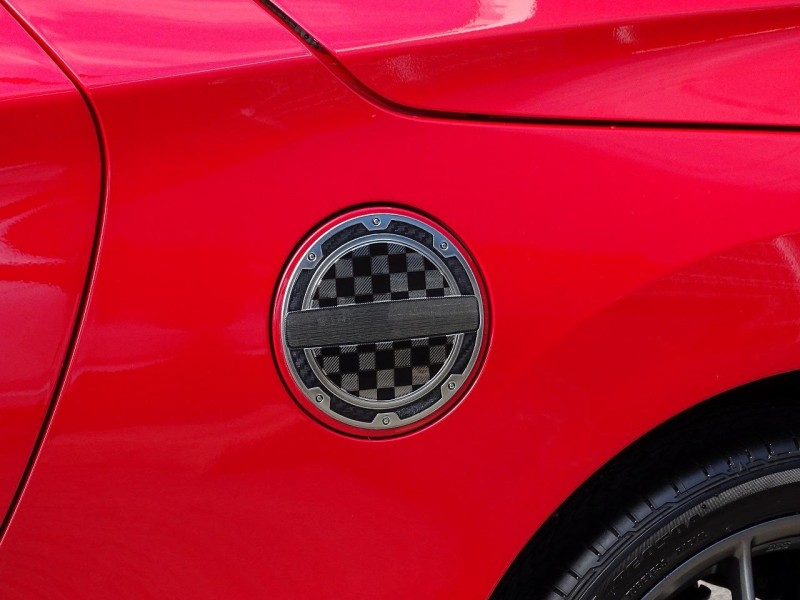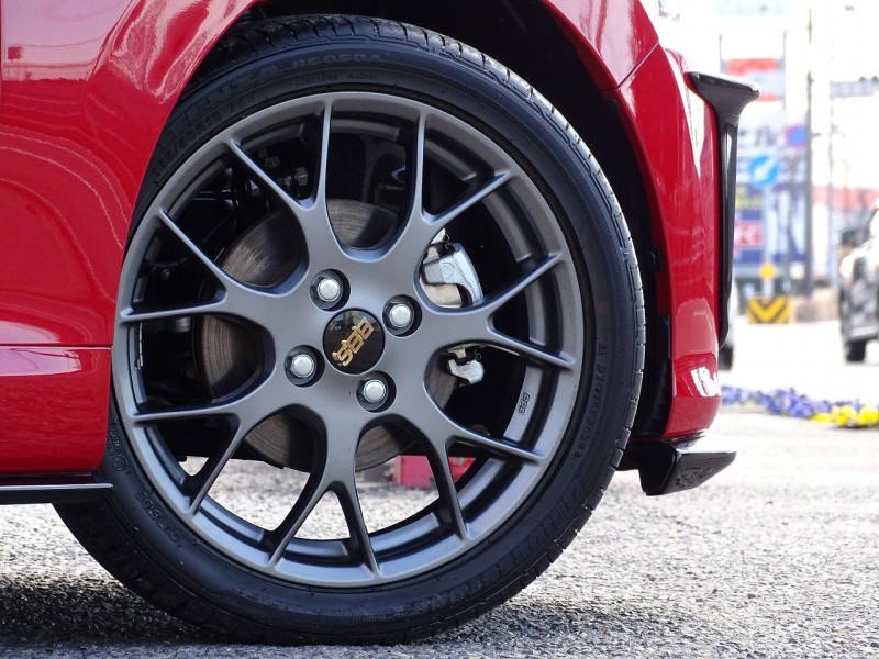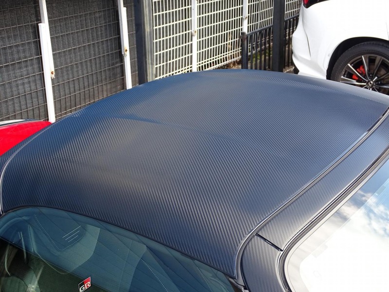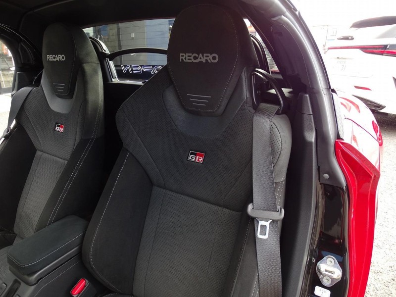 GRのブラックカラーパーツやカーボン調のパーツが、マタドールレッドパールのボディとマッチしていて素敵です。