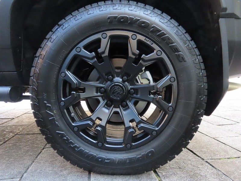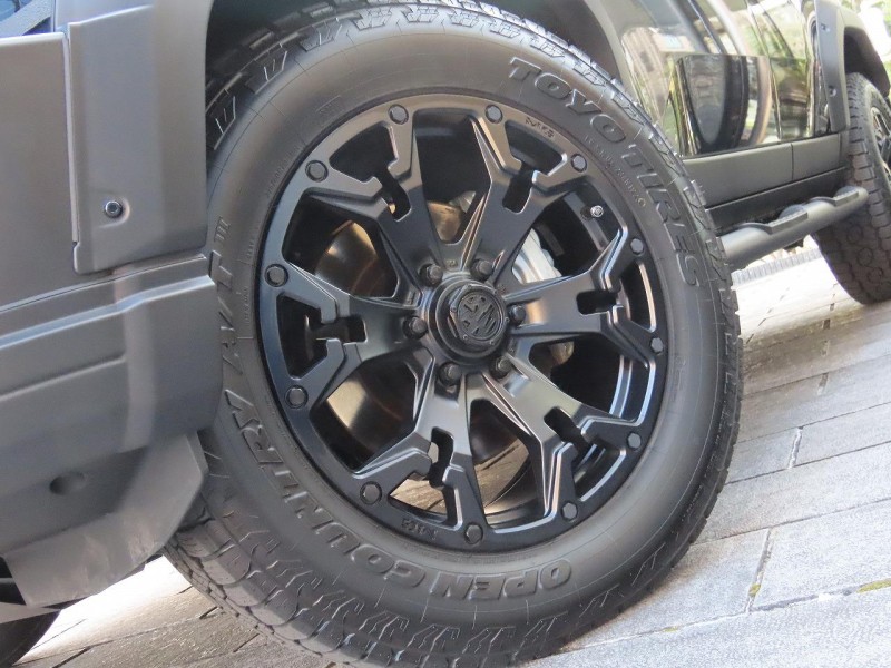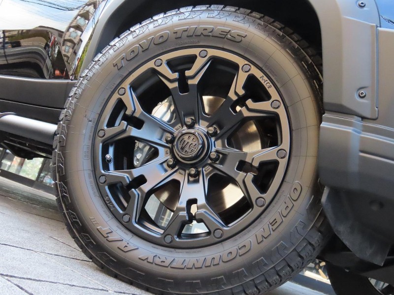 足元をオールテレインタイヤとゴーレムのマットブラックのホイールでまとめる事で、四駆らしい遊び心とトラクション性能を引き出した仕様となっております。